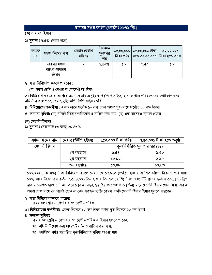 | ০৬ | ডাকঘর সঞ্চয় ব্যাংক | ক্লিক করুন |